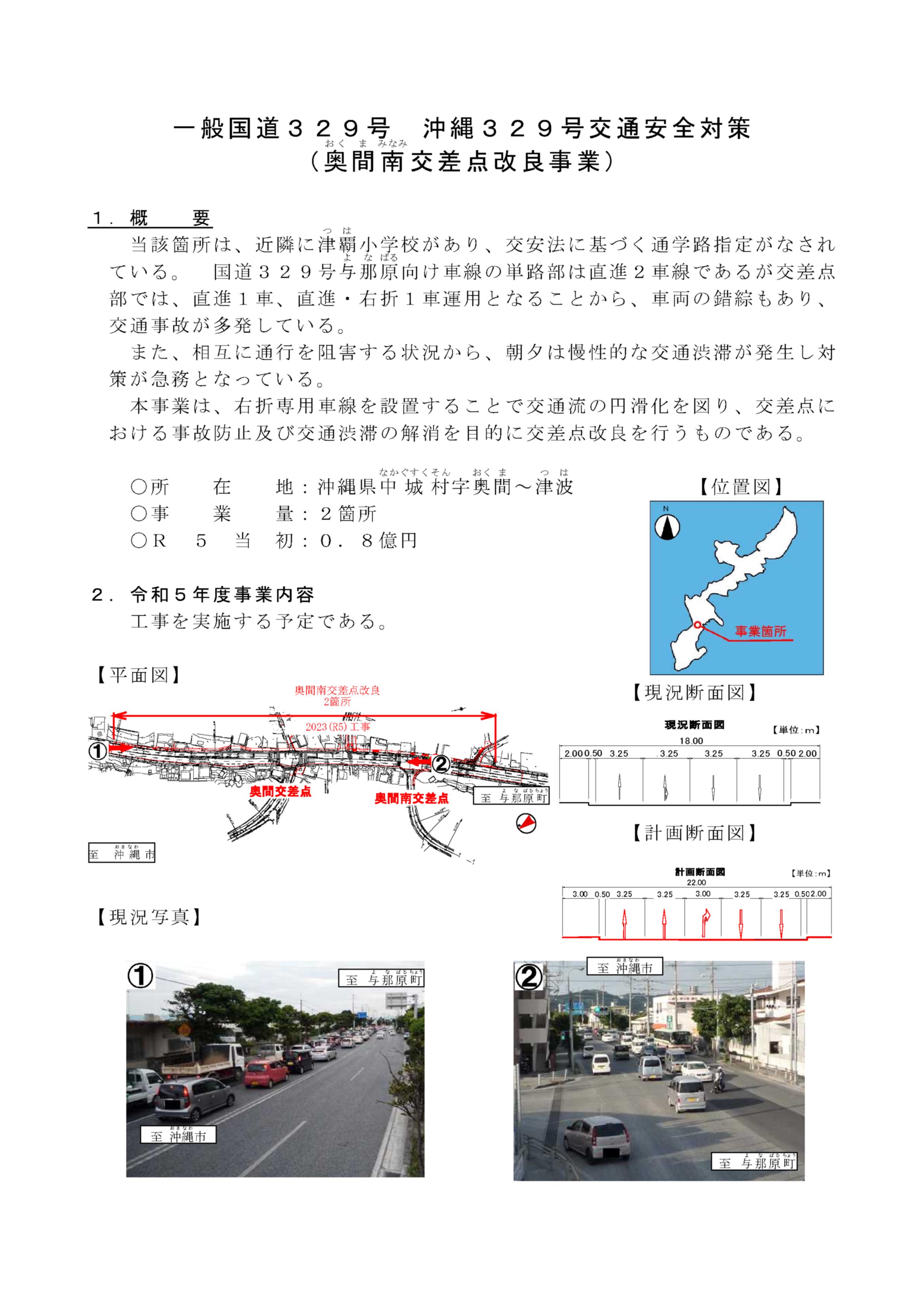 内閣府 沖縄総合事務局 - 一般国道329号 奥間南交差点改良事業