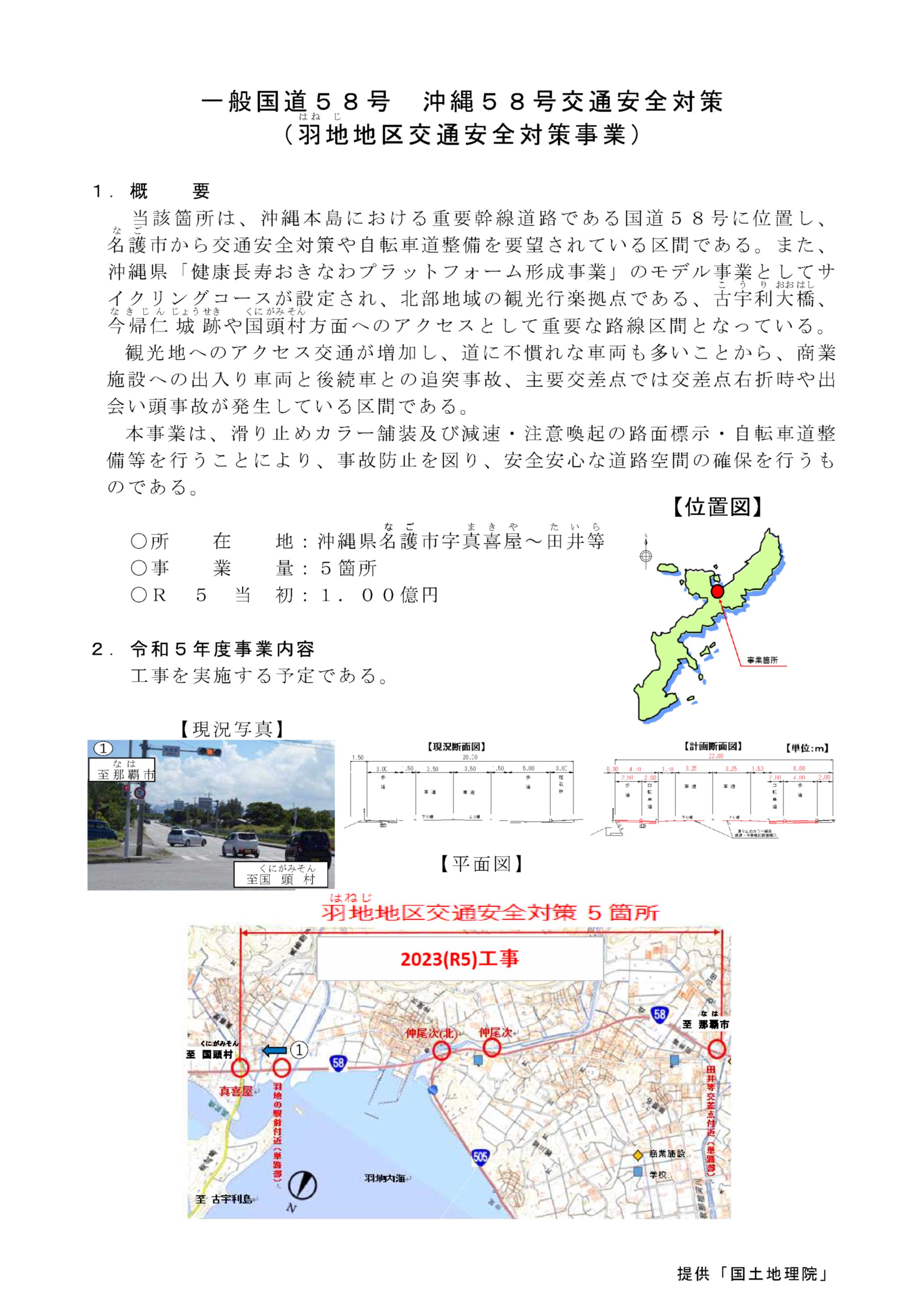 内閣府 沖縄総合事務局 - 一般国道58号 羽地地区交通安全対策事業