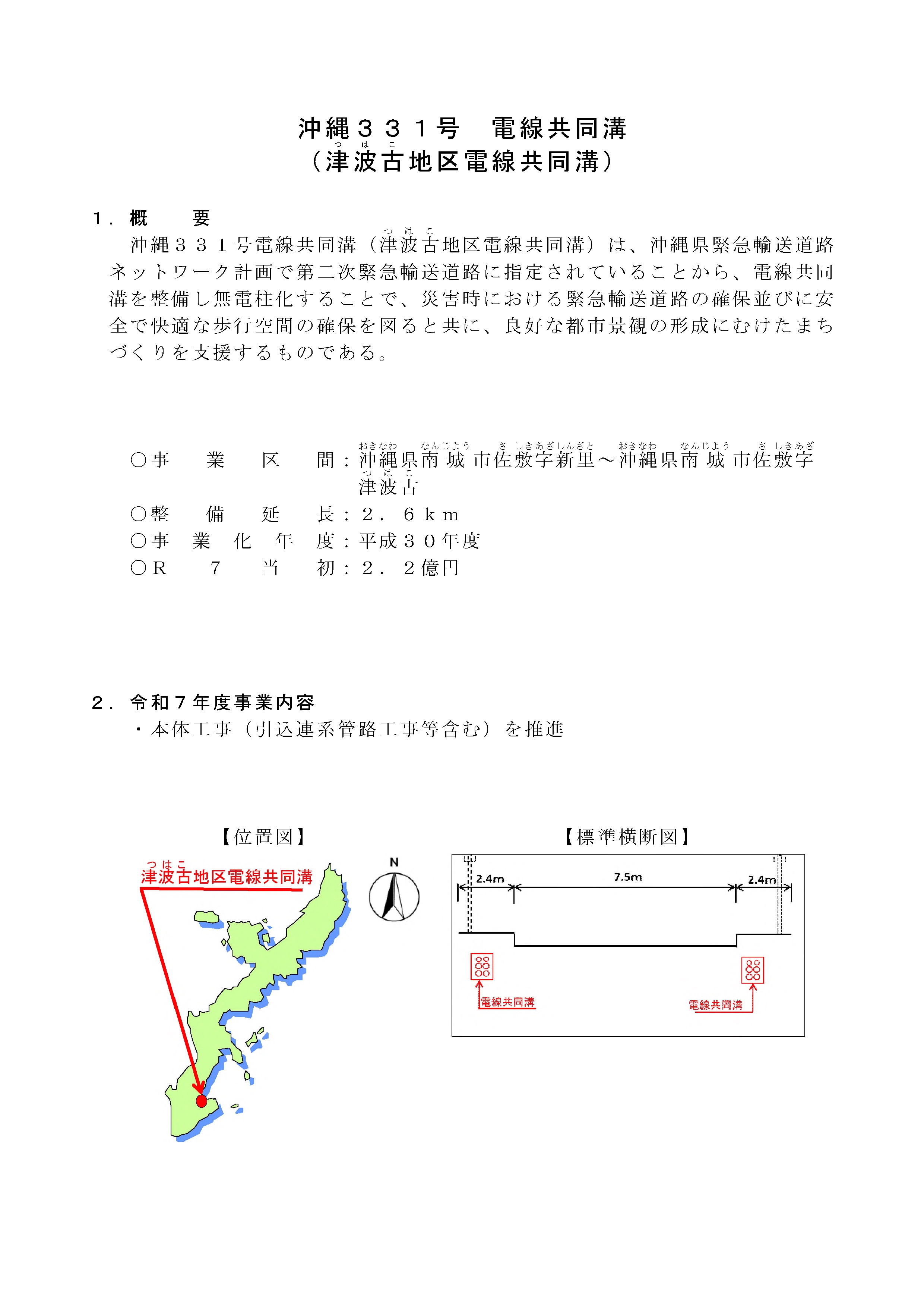 内閣府 沖縄総合事務局 - 一般国道331号 津波古地区電線共同溝