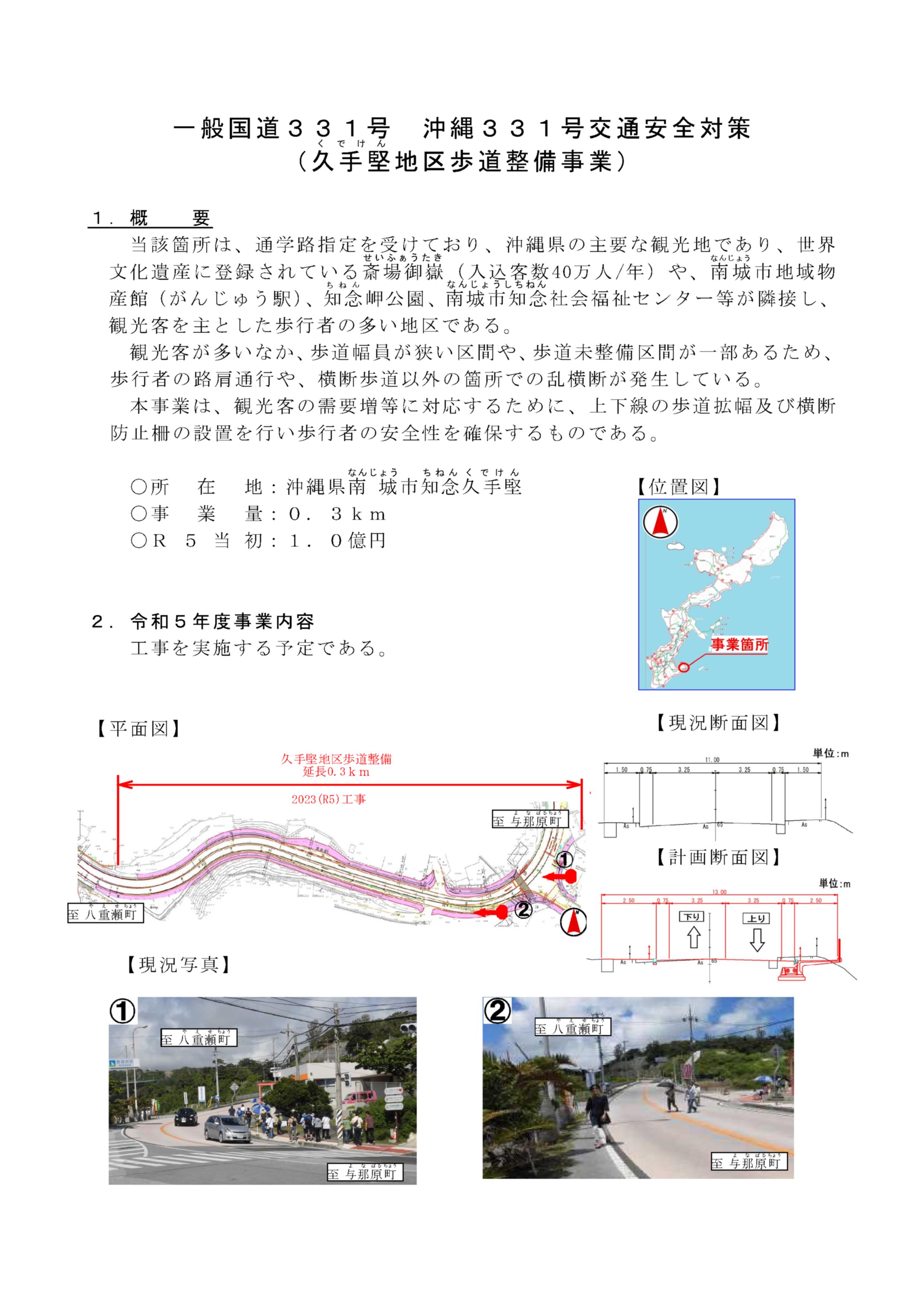 内閣府 沖縄総合事務局 - 一般国道331号 久手堅地区歩道整備事業