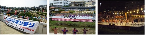 - 5月には、地域の方々が協力し、多くのこいのぼりを掲揚しております。