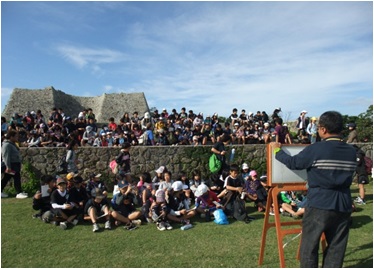 - 紙芝居を自作自演するなど、子ども達以外にも、琉球史になじみの薄い地元民及び観光客を対象に案内導入の方法を実践し、案内の工夫に努める。