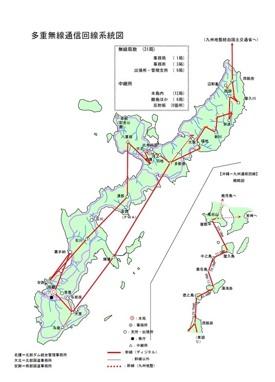沖縄総合事務局の防災通信回線で国土交通省及び各事務所との間の防災通信ネットワーク。