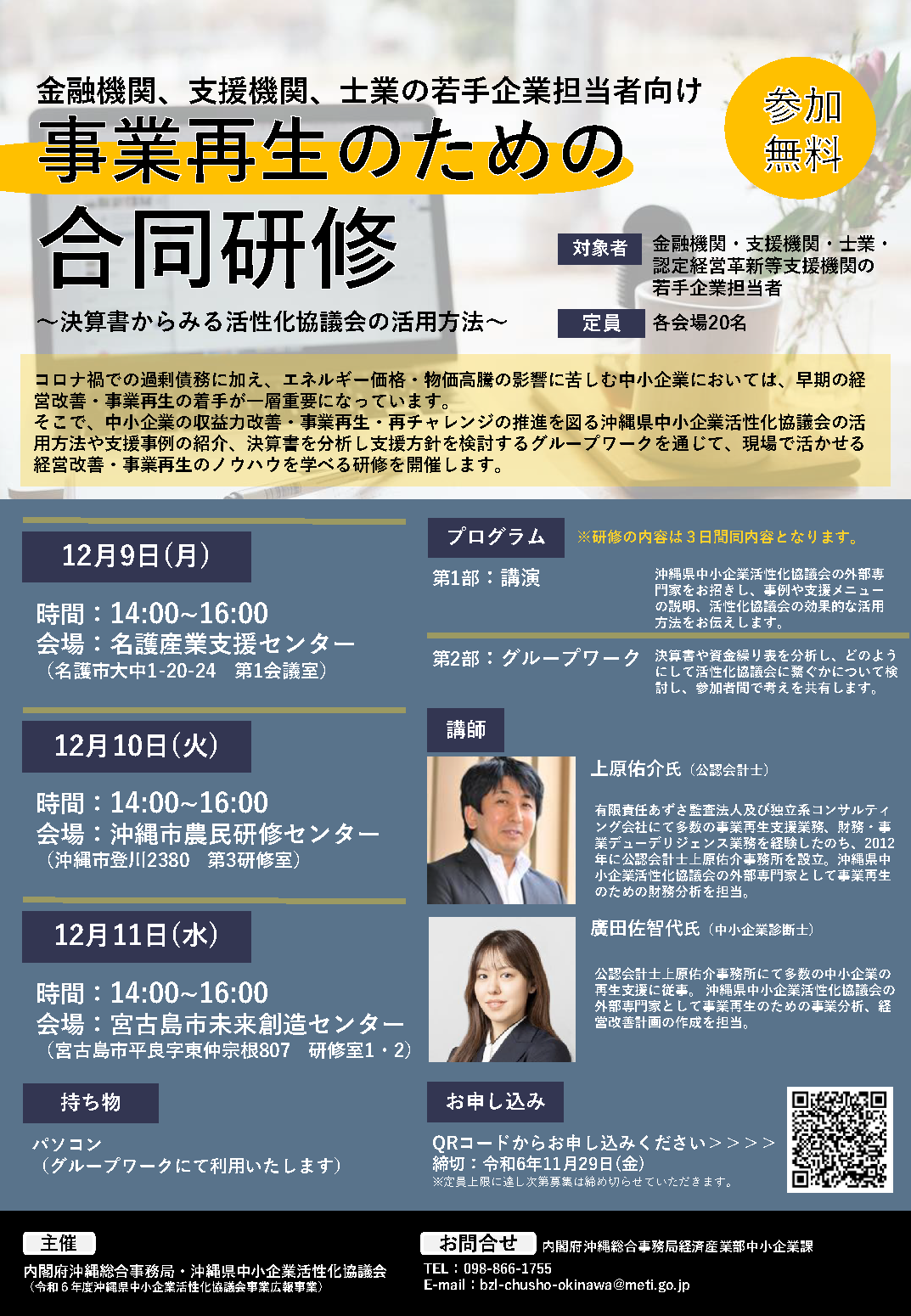 令和6年12月9日(月) 時間 14:00~16:00 会場 名護市産業支援センター (名護市大中1-20-24 第1会議室) |
