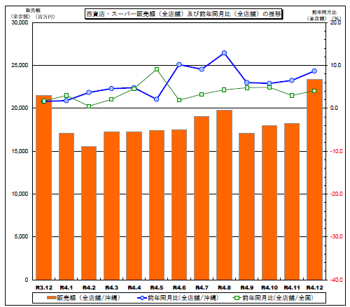 沖縄管内百貨店・スーパー販売動向(令和4年12月分速報)