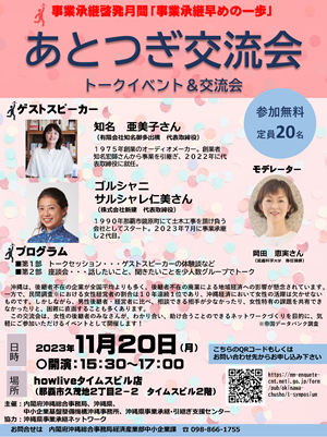 事業承継啓発月間イベント あとつぎ交流会 ~トークイベント&交流会~ を開催いたします!