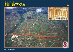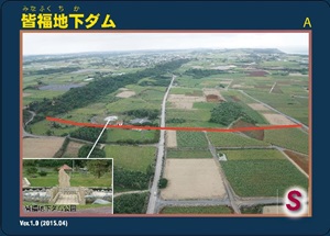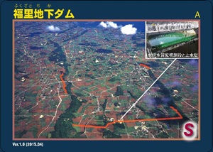 宮古島では、平成27年度から、国営宮古土地改良事業等で築造された、皆福地下ダム、砂川地下ダム、及び福里地下ダムの3つの地下ダムで、ダムカードを配布しています。