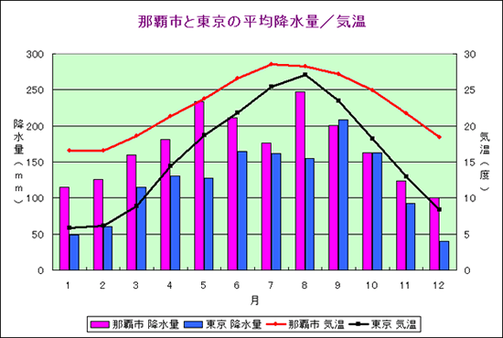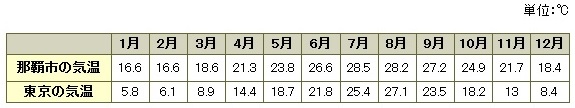 出典:沖縄気象台ホームページ 気象統計情報 那覇市・東京、平年値(年・月ごとの値)