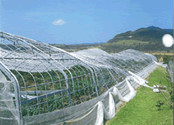 台風により破損したビニールハウス 防風林が設置されて強風を受けなかった
