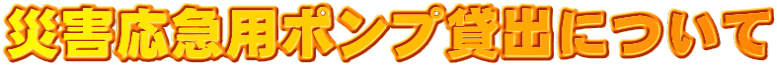 1.集中豪雨などによる湛水の排水などの災害応急対策、干ばつ時の用水補給などに無償で貸出できます。